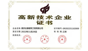 重慶達康建筑工程有限公司,于1993年8月注冊成立,公司注冊資金6128.71萬元,在職員工110余人,其中本科及以上學(xué)歷約40%-50%,擁有一、 二級注冊建造師數(shù)十人,擁有中級以上職稱數(shù)十人,各類從業(yè)資格證及上崗證書若干。公司擁有專業(yè)的技術(shù)施工人員和高效的管理團隊, 能充分滿足并獨立承擔(dān)與資質(zhì)相匹配的工程施工需要;多次榮獲重慶市九龍坡區(qū)“守合同重信用單位”稱號,多次獲得“三峽杯”優(yōu)質(zhì)結(jié)構(gòu)獎和市級文明工地;合同履約率達到100%。